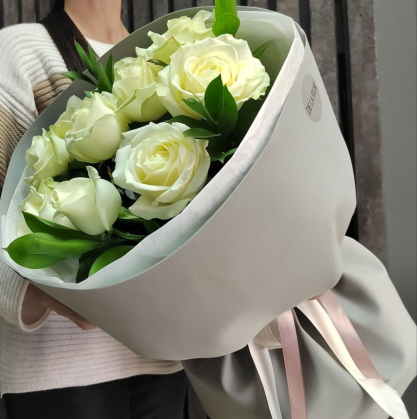 Белые розы Аваланч в стильной дизайнерской упаковке.